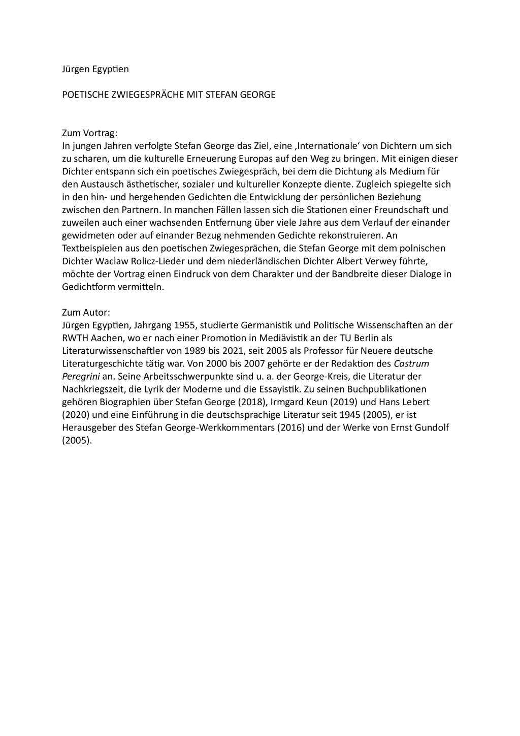 Jürgen Egyptien: „Zwiegespräche mit Stefan George“